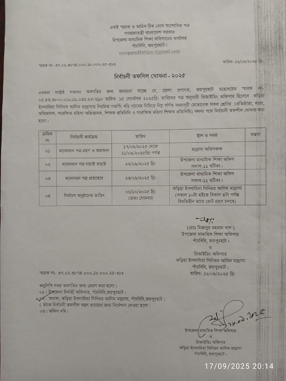 নির্বাচনী তফসিল ঘোষনা - ২০২৫